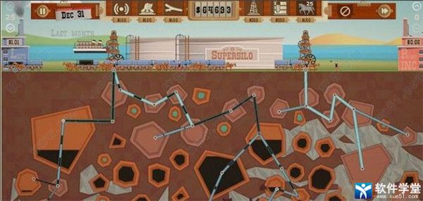 运用钻油井采油,点击管子能够加粗管子,挖油更快,管子要是遇到气矿会把管子里的石油全部喷出来,gg。管子途径气矿并不会使气矿溢出,只要节点不在气矿里就ok。升级的钻头能够钻开石头,建议到沙漠的时候尽快升级。