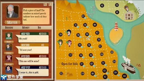 模拟经营类游戏。游戏故事发生在19世纪的北美西部地区,随着19世纪石油工业的爆发,石油开采成为一项非常热门的活动,无数想要通过开采石油大赚一笔的创业者们来到这个美国小镇试图开采石油来赚取丰厚的利润。然而小镇石油资源有限,你需要凭借着自己的聪明才智,在无数竞争者中脱颖而出,最终成为一名石油大亨。虽然对于一款模拟经营类游戏来说 ,画面并不是特别重要,只要将它所表达的事物清晰的呈现在玩家们眼前即可,但这款游戏还是通过大量精美的画面来展现19世纪北美西部的荒凉而又辽阔的景色,精心制作的各大场景地图,美丽的夕阳、篝火、孤鹰、马车,再加上那悠长的吉他背景音效,瞬间将玩家们带到了那真实的北美西部小镇,感受精彩有趣的模拟经营玩法。游戏玩法操作简单,不论是新老玩家们都可轻松上手,体验游戏乐趣。多样化的玩法模式,玩家可以自由选择。进入游戏我们可以通过各种不同的工具来探索石油位置,并进行开采,在大厅里结实镇上的各种不同人物,通过交易或是拍卖的方式进行售卖。在我们售卖石油的过程中,玩家还可以通过各种各样的方式与其他对手竞争,提升石油价格,尽可能的将自己的利润最大化。游戏中,石油最为我们的主要收入来源,它的价格是时刻都在发生变动的,我们必须在最合适的时机出售并找到合适的合作伙伴。此外,在这款游戏内还有其它更多的趣味玩法与特色系统,小镇股票、土地竞拍等等,感兴趣的朋友可以自行体验。本站为大家提供的
