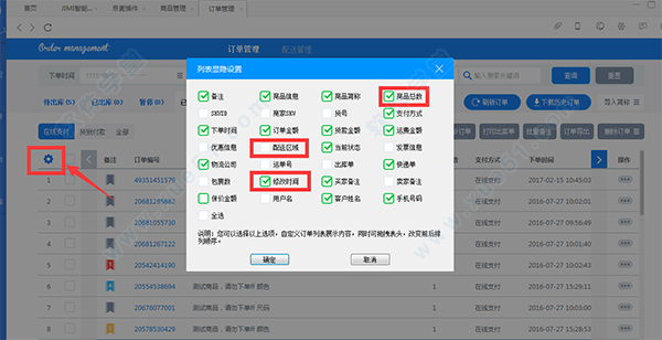 4、订单主列表中增加了配送区域、修改时间和商品件数列;为订单主列表和商品详情列表增加了右键菜单复制数据的功能;