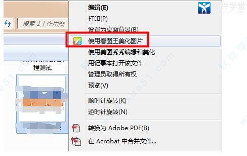 方法三:在电脑上选中想要编辑的图片,鼠标右键选择“使用看图王美化图片”。