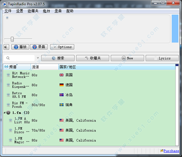 TapinRadio是一款全国电台收音机软件,该软件简单易用,可以收听全球各地的广播电台软件,有拥有大量的电台可供选择,能按照国家地区、流派、主题内容、网络等来分类,而且还支持计划录音、定时睡眠、收藏夹等,加入收藏夹之后,就不用担心下次找不到你想听的电台了,软件优点太多,等我说完天该黑了,还是自己来下载探索吧。本站提供下载的是TapinRadio中文破解版,有需要的可以下载!