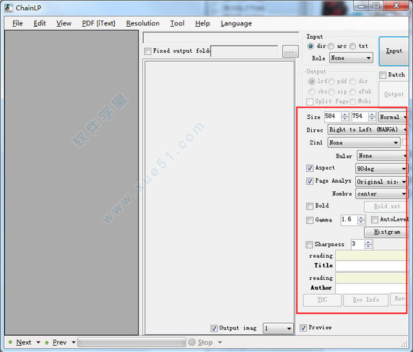 8、另外,在压缩包内,还有一个“BatchLP.exe”文件,它是一个批处理程序,有点儿像PS中的“动作”功能,可以根据设定好的配置,自动批处理图片,这样就不必每次都做同样的设置了。在生成电子书时,可能你会注意到【Output】按钮上方有一个名为“Batch”复选框,勾选之后会交给 BatchLP.exe 处理。