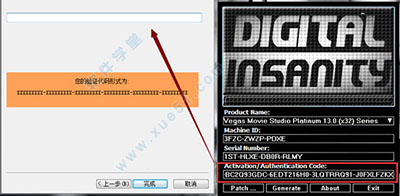 5、将注册机上“Activation/Authentkcation Code”选项的序列号复制到软件上,然后点击“完成”,破解成功