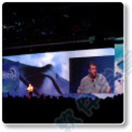 所有的录象设计和动画,以至整个演出程序都使用软件,演讲者后面的背景是由三台BARCO投影机、加插现场录影而组成。