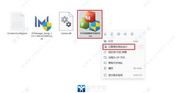 2、然后我们鼠标右键华为电脑管家安装软件.exe文件,以管理员身份运行。