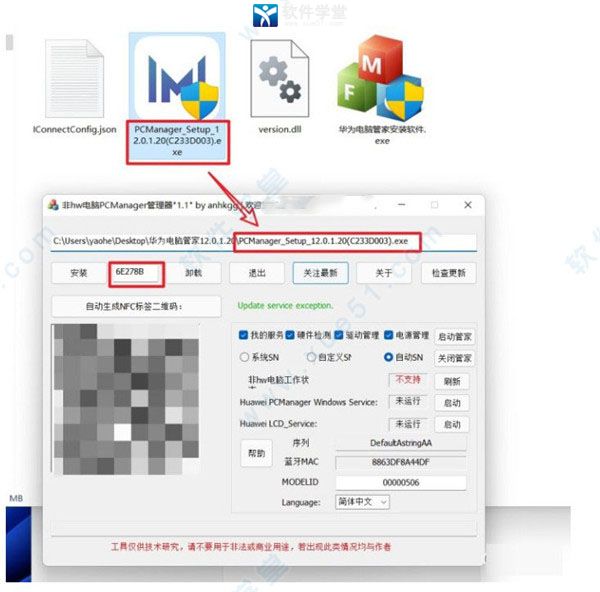 3、接着在弹出的页面中输入口令6E278B,然后按照上图红色方框中的标识,把下载下来的PCManager_Setup_12.0.1.20(C233D003).exe替换到下面以前的位置!!!注意,名字一定要完整,包括后面的.exe。