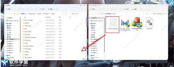 6、然后再将文件夹里面的IConnectConfig.json文件复制到C:Program FilesHuaweiPCManagerconfig里面。