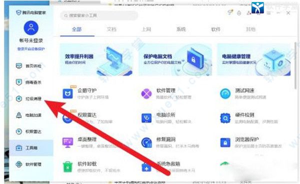一、怎么清理垃圾点击垃圾清理,点击左侧【垃圾清理】选项。