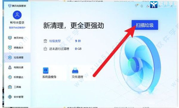 点击扫描垃圾,点击右上角【扫描垃圾】按钮。