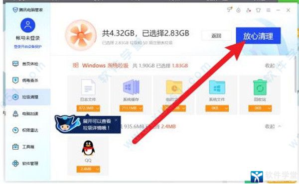 点击放心清理,点击界面【放心清理】按钮完成清理。