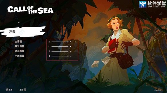 4、设置语言之后,返回主界面,在声音选项中玩家可以对主音量、音乐音量、对话音量、声效音量进行设置;