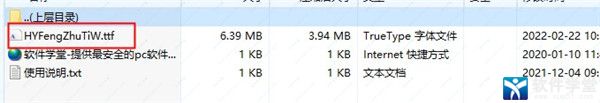 Win系统1、首先在软件学堂下载好汉仪风竹体字体文件包,解压出来得到.tff文件。