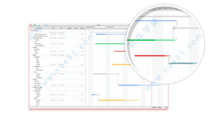 是一个用来协助用户进行项目管理的工具。软件的甘特图中会为用户用图形化的进度条的形式,展示当前项目的所有任务的优先级、进度、开始以及结束时间。
