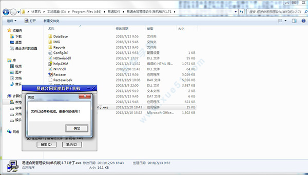 第二步:将压缩包下的补丁文件“易速合同管理软件(单机版)1.71补丁.exe”复制到软件安装根目录下。