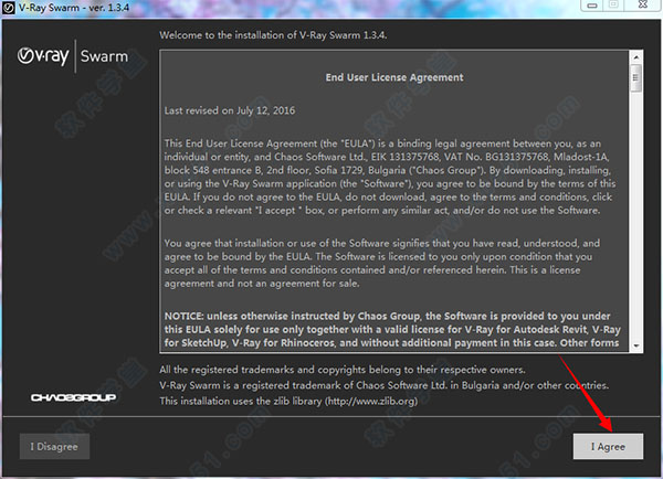 8、又一次弹出V-Ray swarm的相关用户协议,同样点击“I Agree”。