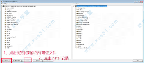 4、在许可证安装界面,浏览指定Licence.lxk文件并打开,点击install安装许可证。
