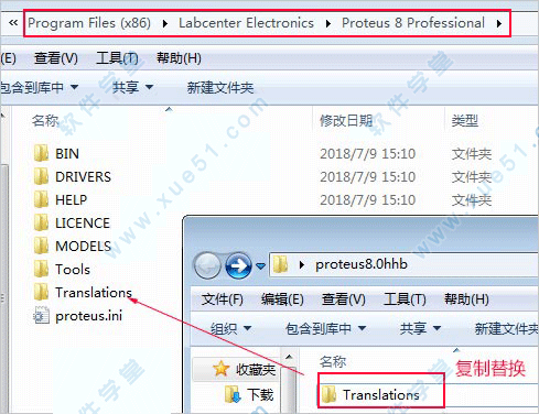 7、软件安装完成后,复制”Proteus 8 Professional”文件夹替换原文件夹即可;