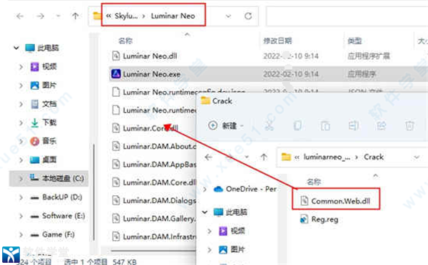 4、将crack目录下的dll文件直接复制并替换到安装目录下,默认路径:【C:Program FilesSkylumLuminar Neo】。