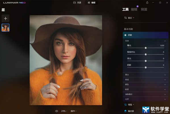 图像编辑软件,这款软件来自Skylum公司发行推出,同时这也是Luminar系列的全新产品。这款软件可以分析每张图像以识别场景的内容以及深度的,软件中还拥有全新功能,其中包括背景替换、图像层、除尘、重新照明选项等,从而实现精确掌控。同时在这款软件中还拥有可简化复杂的编辑程序,如此一来用户即可将自己大脑中想象的愿景变为现实,让使用者能有多大胆的想法都可以在这款软件呈现出来。另外软件中还支持调整照片中的灯光,使用者可以根据与镜头的距离控制出图像的曝光,以独立调整前景和背景曝光,甚至可以自动去除由传感器和镜头上的污垢以及灰尘造成的图像上的斑点,清除图像中不需要的区域。此外使用Luminar Neo你还可以轻松的在一个镜头中组合两个或者多个图像,让你的的图像拥有无限的可能性,并完成创意任务从而获得专业品质的编辑成果。除此之外在这款软件中采用了的是全新的核心引擎和图层工作流程,为用户在提供高速、稳定、灵活、快捷的体验感,相较于其他AI的图像智能处理工具的五花八门,这款软件不论是从功能上还是用户体验感上,他都拥有着自己的优势,并且这款软件对于新手来说也是非常容易使用的,只需要简单几步操作即可完成自己需要达到的图像编辑要求,其编辑出的效果丝毫不差于其他的图像编辑软件,这也是该软件备受用户喜爱的一点。下面小编就为大家带来