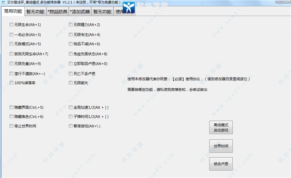 2、当单击界面右上角关闭按钮时退出修改器,此时修改器会关闭所有已开启的修改。