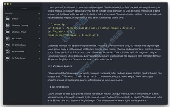 Yu Writer是一款功能强大的Markdown编辑工具。充分学习了一些大型编辑软件的运行理念,使用灵活,操作简单,除了默认的原生界面,自带三款皮肤:Carbon、Lime 以及 Night。每一款的配色都非常养眼,特别是夜晚模式,并非个别大牌那样弄个纯黑了事,能够让用户在一个舒适、专注的环境里创作内容。高效、实用且内外兼修!Yu Writer windows能为你营造一个舒适、专注、高效的写作环境,给人的第一印象相当友好。而官方最新版可以随意更换主题和布局,各种一键插入图片、一键建表格、插代码、链接、公式,一键切换布局使得等操作起来十分高效流畅自然。软件希望你可以在一个舒适、专注的环境里创作内容,所以在界面上做到尽量的美观、简洁,你可以随时更换主题、隐藏不需要的部分,或者一键进入只有一个编辑框的专注模式。欢迎有需求的朋友请下载。
