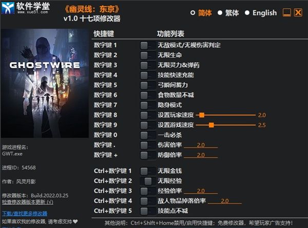 幽灵线东京修改器风灵月影版,使用这款修改器可以做到无限生命,无限灵力,无敌模式等等,相信各位玩家肯定会在游戏中获得一个良好的游戏体验,对此有兴趣的小伙伴们可以来下载试试!
