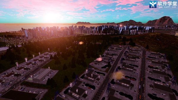 一般初始地图都有一条河流,将主干道延伸至河对岸,并引出一条辅路(延伸至河对岸是为了将工业区和主城区分离,方便污染隔离,不想这么样做的小伙伴也可以将主干道延伸至其他地方),在辅路路端建造发电厂,建议建造燃煤发电厂,并用电线将电力运送至城区。