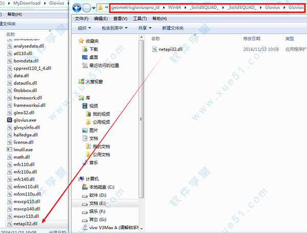 1、回到文件包,将“_SolidSQUAD_”文件夹中“Glovius”目录下的破解补丁复制到软件安装目录下。