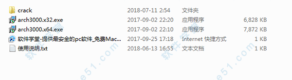 百度网盘下载并解压好文件,得到32位和64位安装文件和“crack”破解文件。