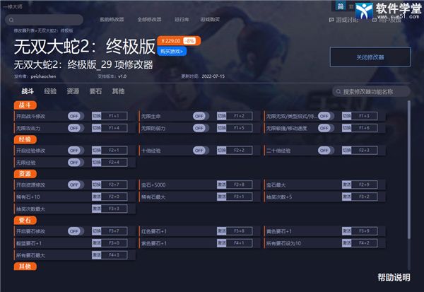 无双大蛇2终极版修改器使用说明