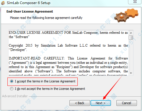 读取并接受最终用户许可协议,然后单击“下一步”。