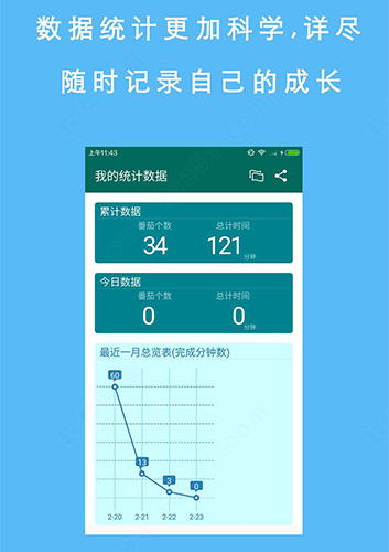 这允许用户预计每个任务的工作量。当每个番茄时结束后,成果会被记录下来以提高参与者的成就感并为未来的自我观察和改进提供原始数据。