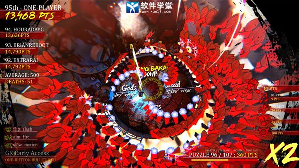 众多游戏分类当中,独立游戏一直以来都是一个很特别的赛道,不仅诞生出来多个经典的游戏作品,而且随着独立制作团队的增加,游戏的玩法也变得新奇十足,本次小编为大家带来了的这款骑士镇魂曲也是近年来独立游戏当中备受期待的游戏作品之一。游戏的玩法比较偏向于音游,玩家将扮演一位骑士面对诸多的恶魔进行战斗,通过近战砍杀、远程射击以及子弹时间三种方式击败恶魔即可获得胜利,而在战斗的过程当中玩家的周围将会出现多个恶魔的簇拥向玩家发射弹幕,受到弹幕伤害的玩家就会立即死亡,回到受伤之前的游玩进度,并且不只是恶魔的簇拥,恶魔也会有一独特的射击弹道向玩家发起攻击,弹幕的密集度和东方一比可以说是有过之而不及。与之极高挑战难度相反的则是游戏极为简单的操作方式,不管是在何种难度之下,玩家全程只需要三个按键即可,分别控制角色的移动朝向,角色的远程攻击瞄准以及开关子弹时间,跟随着音乐的变化,玩家需要在密集的弹幕之中寻找的最佳的躲藏地点,并在躲藏的间隙利用攻击杀死恶魔的簇拥,挑战恶魔本身。此外,游戏最为生草的地位在于难度的定位,一般游戏都会以简单、普通、困难为基础,更具有挑战性的难度则回忆额外的模式加入,而这款游戏不同,简单模式后直接解锁困难模式,困难模式后还有这诸多的难度等待玩家解锁,这些难度本身也附带的解锁挑战,所以想要挑战高等度在这款游戏内也是一件比较困难的事情。本次小编也为大家带来了