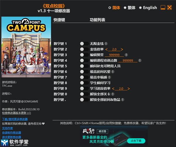 双点校园修改器是一款帮助玩家以更加舒服的方式经营校园的