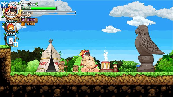 部落猎人是一款经典风格的动作平台游戏。玩家成为传说中的守护神“蒙克”。狩猎敌人并可以吃掉他们以增加他们的饱腹感。如果你吃得足够,你会变大!然后,您的体型和丰满度还可以用作魔法计量表,您可以将其用于各种效果,例如治愈自己或施展强大的魔法(如火球)!