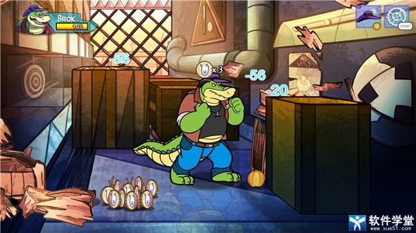 鳄鱼侦探布罗格是一款点击式的冒险解密游戏,玩家将在游戏中扮演鳄鱼人布罗格成为一名私家侦探,解决废土世界背景下社会的种种问题,通过收集、询问、记录、使用物品等方式逐步完成接受的委托任务,部分事件还需要玩家审问罪犯从中套出有用的信息,观察并将物品运用到合理的位置,有时还需要细心查看周遭环境,以免丢失了重要的解谜线索。随着故事的不断推进,不少之前无法交互与获取信息的渠道将会被打开,玩家所能够了解到的信息也会越来越多。不过,鳄鱼侦探布罗格还有另一种身份,那便是清版动作冒险玩法,虽说解谜游戏需要依靠的是玩家信息的收集能力,但是在该游戏当中拳头也是一个不错的解决方式,玩家控制的布罗格既是一名优秀的私家侦探,同时也是一名十分厉害的拳击手,整个的过程当中玩家不仅需要在各个场景之下收集各种信息,还需要依靠拳脚来揍扁找麻烦的敌人。光是普通的拳脚还不够,玩家可以在设置当中查看到完整的攻击方式以及按键方法,并且击败敌人时所获得的经验还可以帮助玩家提升等级,增加生命、伤害以及必杀技的属性,这种点电rpg式的动作解密游戏还是十分新颖的。此外,在后续的剧情当中,玩家还可以控制另一名角色老鼠人格拉夫,它同样也是身怀绝技,而且还要帮助到布罗格完成一系列的解谜事件。为了能够让玩家体验纯享版的街机格斗玩法,游戏还专门有一个名为竞技场的模式,玩家便可以在里面选择布罗格和格拉夫的其中一位进行挑战,挑战的关卡越多,奖励也就越丰富。本次小编也为大家带来了