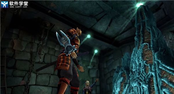 出了房间,在进入对面的大铁门,可到大厅的二楼,此时会看到一楼有敌人正在攻击城李士兵,此时可用弓箭射死敌人,如果用弓箭还一直射不到下方门边的敌人时,可换上红炎剑,等到敌人走到靠近你的脚下时放战术壳烧死他,不过另一个在中央的敌人是烧不到的,只能用弓箭啦!就到士兵后主角再回到一楼时就可得到力石和一株草药了。再进入一个有红色封印的门(level 1),打倒敌人后再进入木门,然后可在楼梯下方看到一个大木箱,砍破木箱即可发现装有定角之矢的宝箱,然后上楼梯,在楼梯旁可找到装有定角之矢的宝箱和一本白虎之书,此时可在记录点顺便记录,然后就可进入有两个封印(level 2)的门。