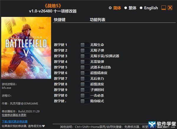 战地5修改器是一款仅限于在单人战役使用的