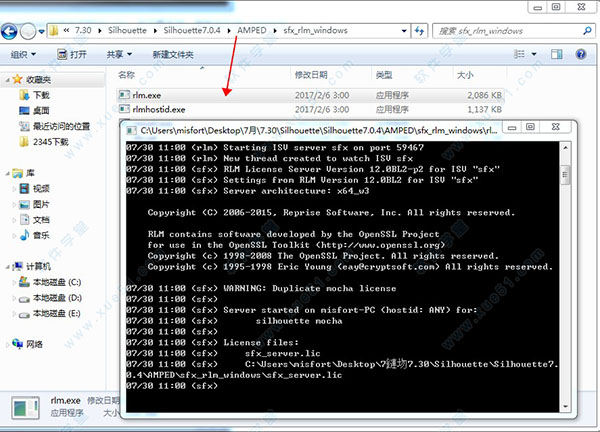 1、安装完成后,回到软件安装包打开“sfx_rlm_windows”文件夹,点击鼠标右键以管理员身份运行“rlm.exe”,弹出界面后不要关闭,保持运行sfx_server.lic授权文件