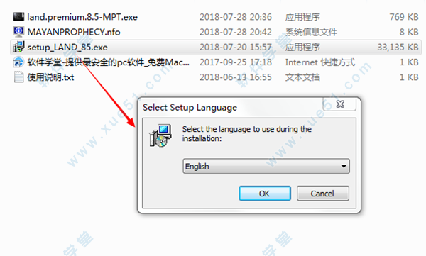 1、在本站下载并解压,得到“setup_LAND_85.exe”安装主程序和“land.premium.8.5-MPT.exe”破解文件。