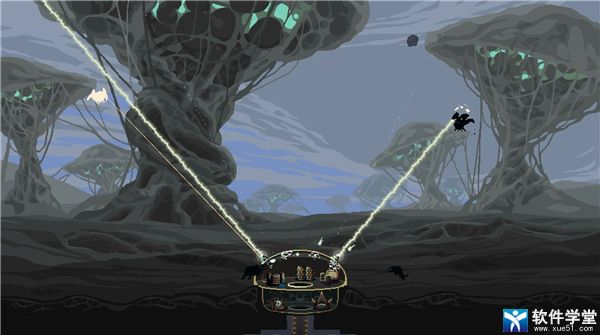 在本作中玩家是来到了一处异星球之上,玩家只能龟缩在所谓的保护罩之内,通过在保护罩内向地底挖掘获取资源来强化自身以及保护罩的各种防御措施来抵挡源源不断来袭的怪物,简单来说,游戏内挖矿为了生存下去抵挡永无止境来袭的敌人,而消灭敌人更是为了玩家可以之后进行挖矿获取资源,这么一听是不是游戏内也是很好的完成了动静结合的方式,其实不然,游戏内缺少了至关重要的几个环节导致本作的想法创意确实不错但是具体体验下来却有些不尽人意的。