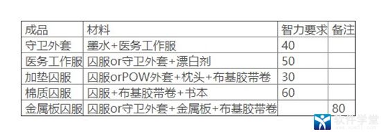 等你拿到两个冰袋已经成功一半了,剩下的就是需要一个胶带合成心率减慢装置,再拿个胶带和锡纸?合成违禁品袋子,最后穿上囚服,带上袋子,带上装置 走进右边医务室,找上面那个床就可以走了。
