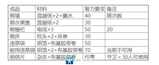 2、选择挖洞通关的话,记得拿工作台把洞口堵住,否则极其容易被发现,立刻就会被修复起来。如果想打通通风管道,也记得先做好[伪造的通风口]来进行遮挡。
