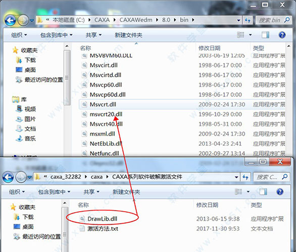 5、注意不要运行软件,打开破解文件,将“DrawLib.dll”替换到软件安装目录下载