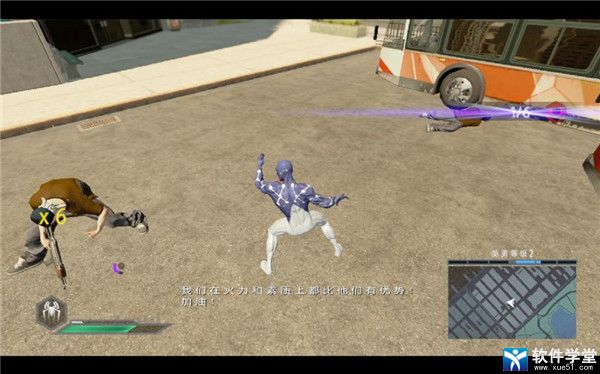 然后主角就变成蜘蛛侠,然后灰了起来。这里要说一下怎么灰,就是左摇杆+LT/RT就可以在城市中飞行。