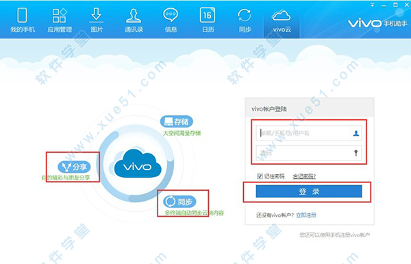 2、登录vivo云,然后就可以使用同步 分享等功能了。