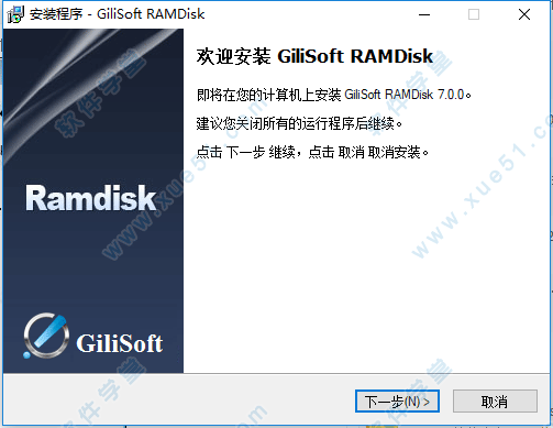 1、解压压缩包双击“Gilisoft RAMDisk 7.0.exe”开始安装软件。