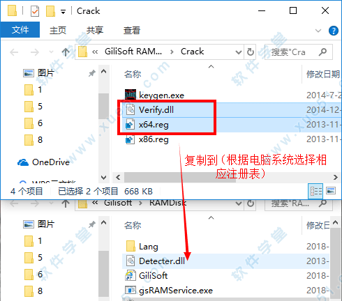 3、安装完成后将数据包中“crack”文件夹下的“Verify.dll”文件和注册表文件复制到软件的安装目录下,默认安装目录:“C:\Program Files (x86)\Gilisoft\RAMDisk”。