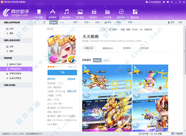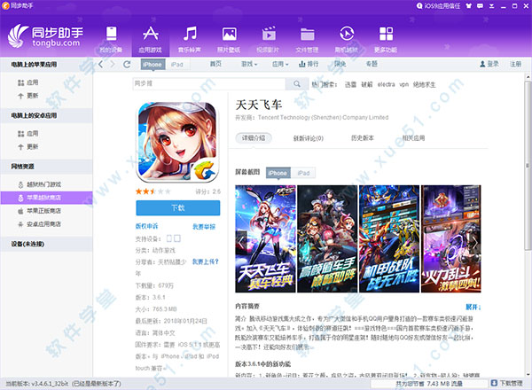 同步助手iphone版是一款最安全最容易使用的iphone/iPad/iTouch设备管理软件。具有海量游戏、应用、壁纸、铃声便捷下载,更能修复闪退、备份还原个人数据、清理垃圾、制作手机铃声、越狱、备份