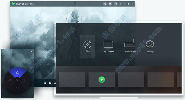 二、完全重制的用户介面上可使用电脑播放与电视播放模式重制的dvdfab player 5搭配了全新的用户介面,可让用户选择两种不同的播放模式。电脑播放模式可為用户营造在电脑萤幕上的沉浸式观赏体验;电视播放模式致力於在大萤幕电视机上為用户带来影院级视听享受,可与Windows媒体中心的远程控制相容。